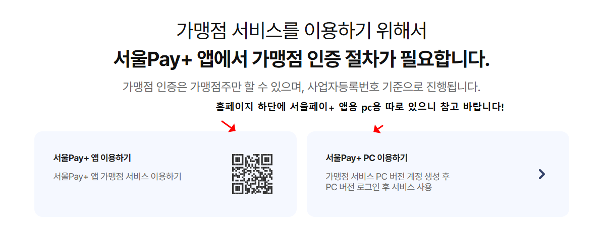 홈페이지 하단에 서울페이 + 앱용 pc용 따로 있으니 참고 바랍니다.