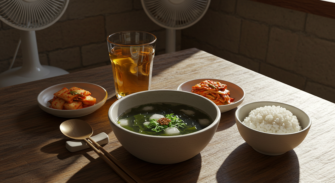 보양식이 꼭 뜨거울 필요는 없죠! 미역냉국은 수분과 전해질을 동시에 보충해주는 최고의 여름 반찬입니다. 혈관 건강에도 좋은 알긴산이 풍부하고, 밥 반찬으로 곁들이면 입맛이 살아나요.