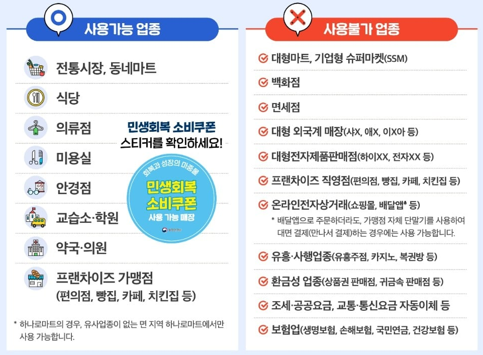 1. 민생지원금 사용 가능한 곳 (2025년 기준)