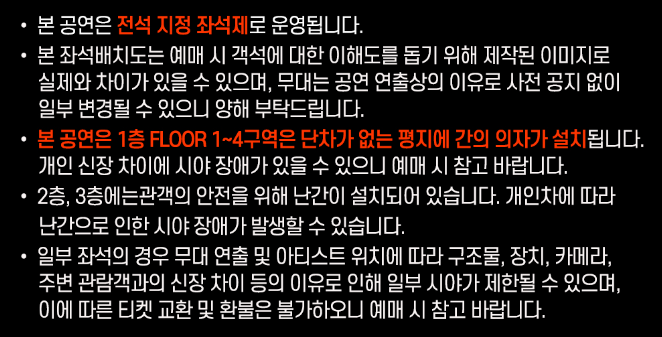 - 좌석배치도는 예매페이지 하단 또는 본문 이미지 참고!