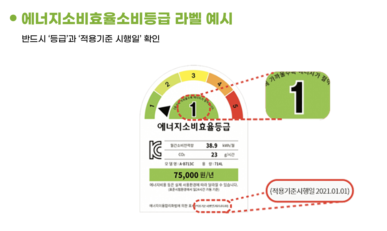 - 1등급 라벨·명판 확인 후 구매