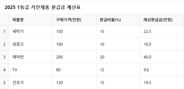 2025 으뜸효율 1등급 가전제품 환급방법·대상 총정리