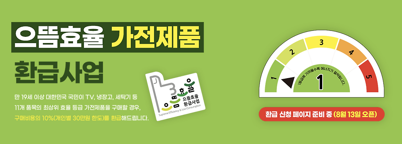 - 대상: 에너지효율 1등급 제품 11개 품목